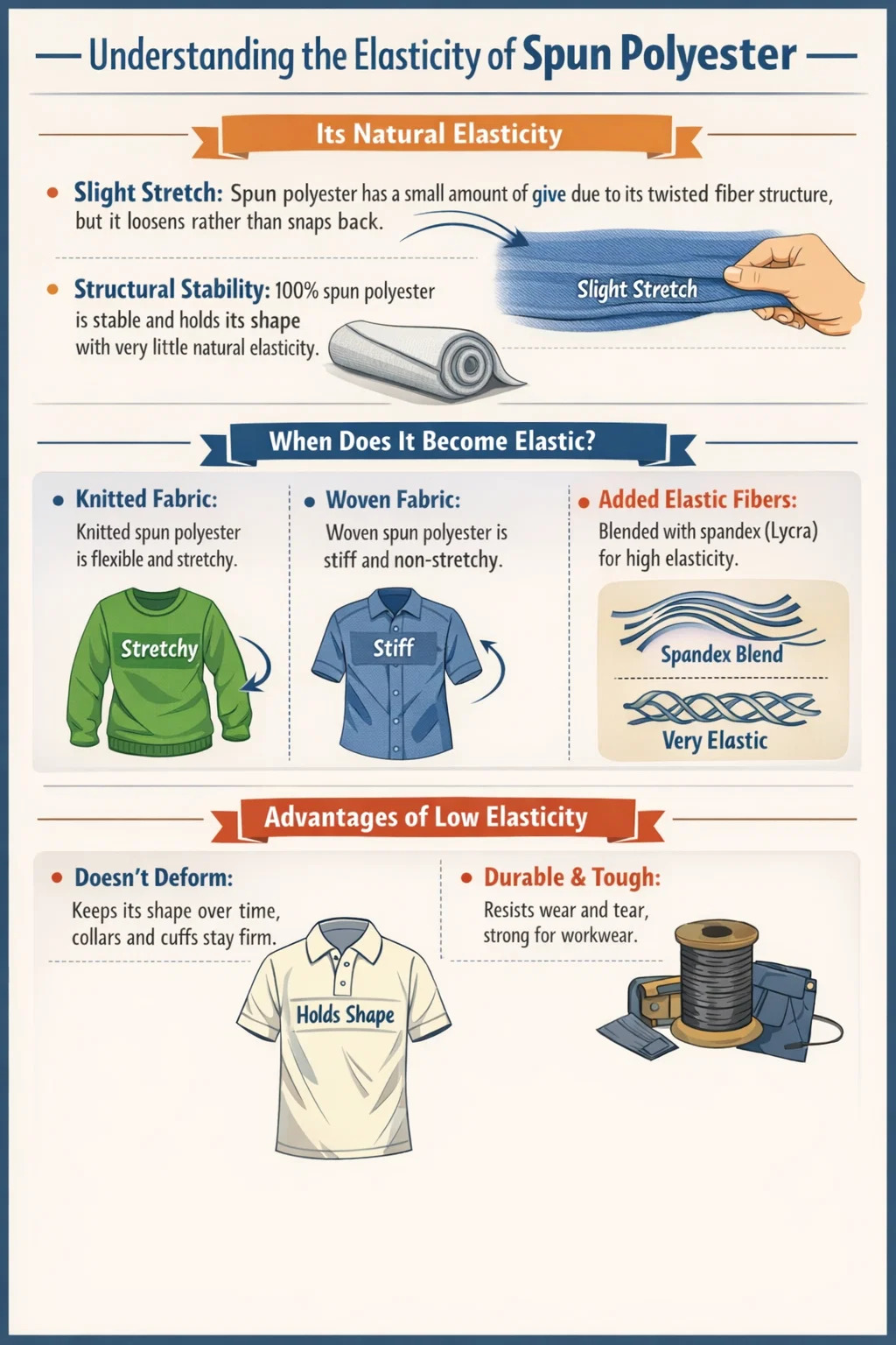 سواء كان البوليستر المغزول مرنًا أم لا، لا يمكن الإجابة ببساطة بـ "نعم" أو "لا". يعتمد ذلك على كيفية نسجه وما إذا تمت إضافة "مكونات سرية" أخرى.